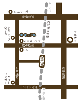 東京都小平市小川町1-973-4 042-315-6049 営業時間10:30〜20:00 日曜定休 駐車場4台あり 西武国分寺線 鷹の台駅より徒歩5分